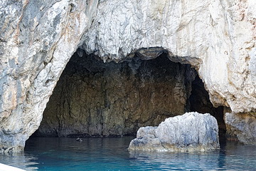 Will man die kleinen Grotten entlang der Küste etwas genauer betrachten, empfiehlt sich ein Bootsausfug mit kleineren Booten, wie sie in der Bucht von Agios Spyridon angeboten werden.