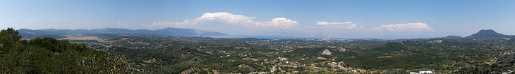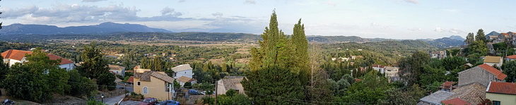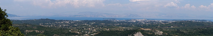 In the center of the panorama one can spot the old (left) and new castle as well as the airport to the right and Vido, the small island in the background.