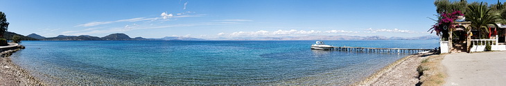 Long sandy beaches and large hotel complexes are rare in this part of the east-coast. Instead you'll find small pebbled beaches with a pleasant and calm atmosphere and a panorama spanning from the northern part of Corfu along the mountain coast of Albania and the Greek mainland up to the mountains south of Igoumenitsa.