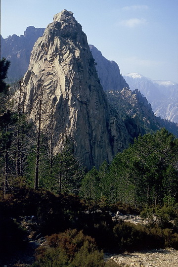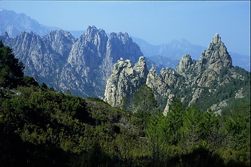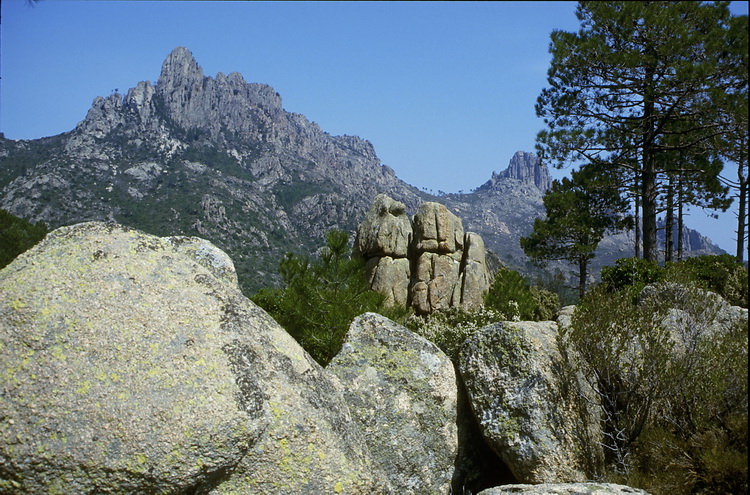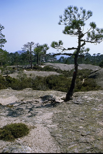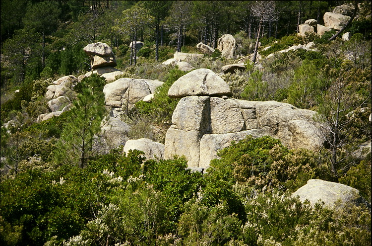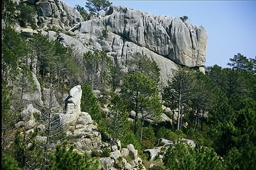 Im Anstieg über die Südhänge der Cima de Capello (1040 m), dem südlichsten Ausläufer der Bavella durchquert man eine Welt von sonderbaren Felsgestalten, die sich bildeten, nachdem das Gebirge aus dem Meer auftauchte.