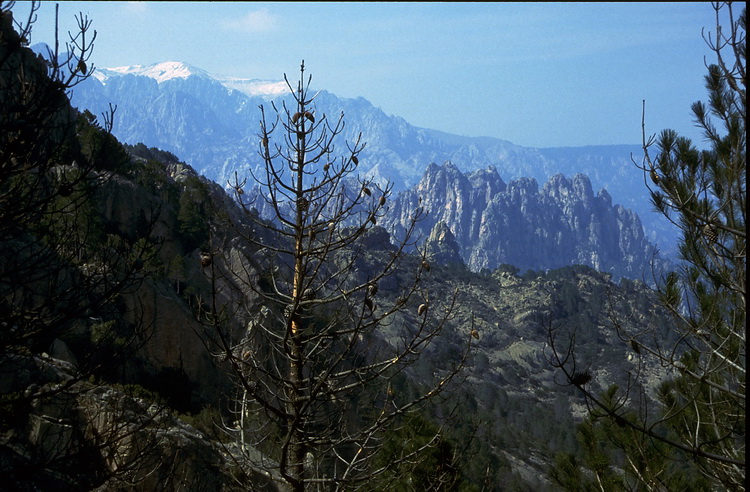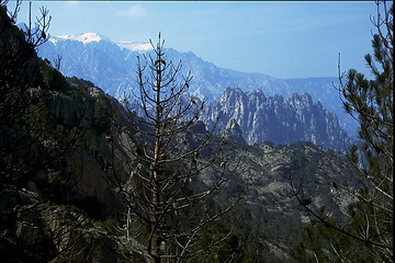 Im Südosten von Korsika beginnt der GR 20 Weitwanderweg in der Ortschaft Conca. Wir wollten Ostern 1987 den südlichen Teil des Weges bis Vizzavona begehen aber selbst hier trafen wir noch auf viel Schnee bis herunter in die Waldregion auf etwa 1600 m. Zu kaufen gab es unterwegs nichts, da alle Bergeries noch geschlossen waren. Dafür war aber Wasser unterwegs kein Problem, und es waren nur ganz wenige Wanderer unterwegs. Der Nordteil des GR 20 war noch tief verschneit, führt er doch bis über 2700 m Höhe am Monte Cinto.