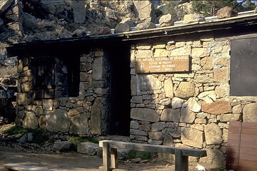 The bus from Bastia to Bonifacio stops in Sainte Lucie de Porto Vecchio. For the final 6 kms to the southern starting point of the GR 20 we got a lift by a local baker. The right image shows the Portail d' Usciolu (also: Bocca d' Usciola) Gap (587 m - 1 hour above Conca) from where we got a first view of the snow-covered Punta di u Fornella (1899 m - left) and Punta Muvareccia (1899 m - right) north of the Bavella Pass.
