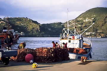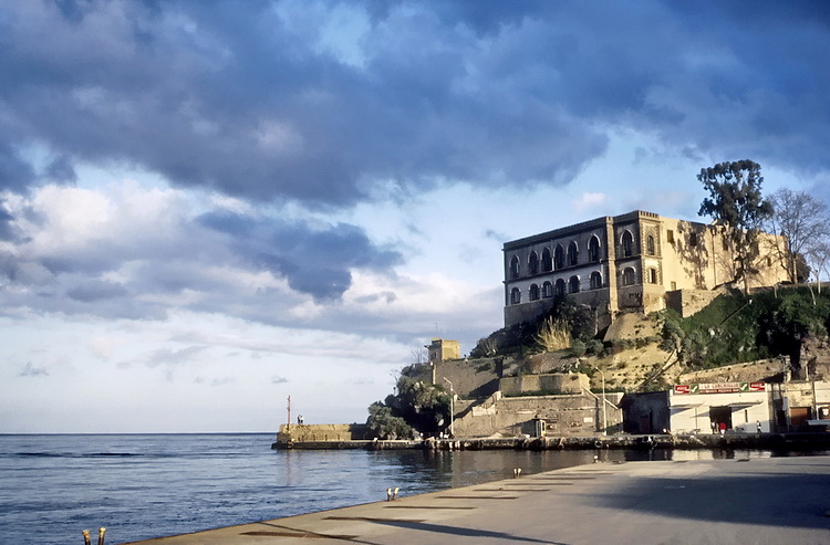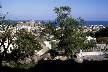 The harbour of Lipari is dominated by the fortress (Castello) and the Monterosa Peninsula.