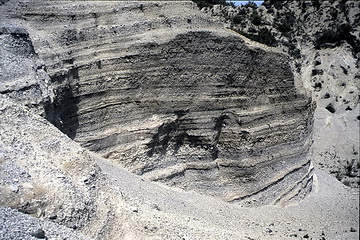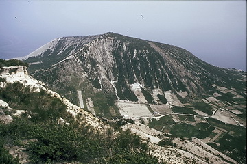 Monte Pilate seen from the slopes of Monte S. Angelo. Unfortunately the visibility was very limited due to Sahara dust which was transported by the Scirocco wind. Canyons formed of pumice have to be crossed between Monte Pilate and Monte S. Angelo.