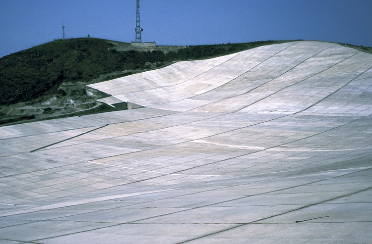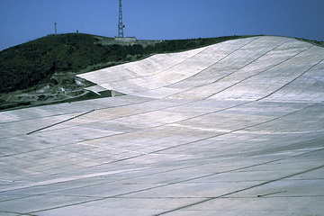 Die einem Schneefeld gleichende Fläche am Monte S. Angelo (594 m) dient zum Sammeln von Regenwasser. The object of the snowfield-like plain on Monte S. Angelo (594 m) is to collect the rainwater. |