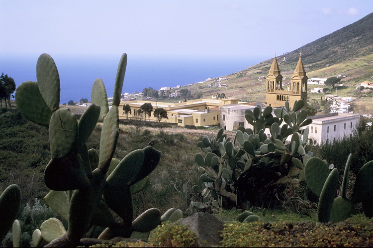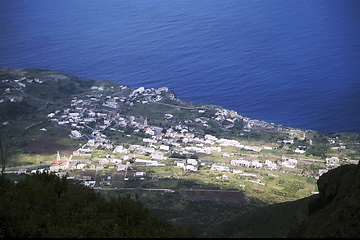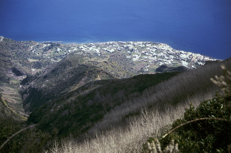 Noch fast 1000 m Abstieg bis zum Meer an der Nordküste von Salina.Santa Marina Salina an der Ostküste von Salina.