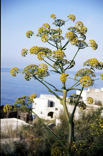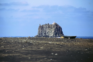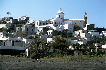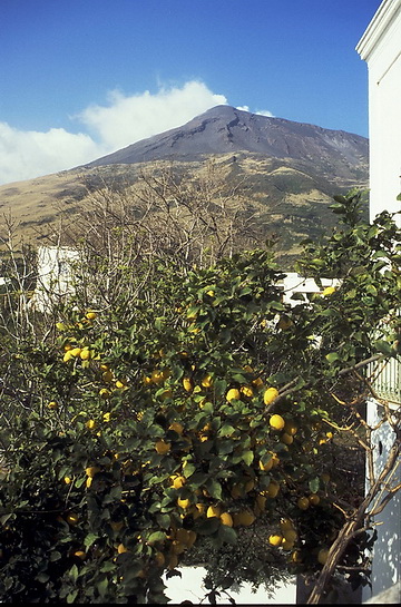 With a height of 3000 m the volcanic cone of Stromboli surpasses its well-known neighbours Aetna or Vesuvius by far. Unfortunately only the top 926 m are visible, the rest is below sea-level. Stromboli is still active and shows a special pattern of eruptions known as 'Strombolian Eruption'. Two kms north-east of the island Strombolicchio a small and uninhabited rock with a lighthouse on top is jutting out of the sea.