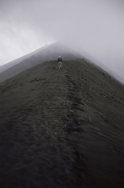 Kurz nach der Ortschaft Stromboli beginnt die Wildnis. Es gibt lediglich noch den Ort Ginostra am Westufer der Insel – erreichbar per Schiff oder zu Fuss über den Gipfel des Stromboli. Gegen Abend machten wir uns auf Richtung Stromboli, zuerst nach Westen und dann entlang der Sciara del Fuoco hinauf zum Gipfel. Heute gibt es einen neue Anstiegsroute, direkt über die Nordostflanke.