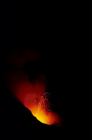 The parabolic curves of the thrown-out lava can best be taken using a tripod.