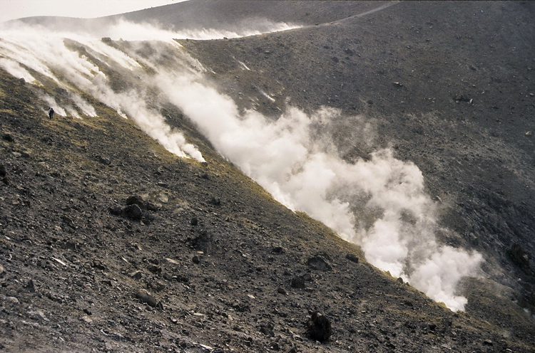 The sulfur vapors of the crater rim are already visible from Ponte di Levante.