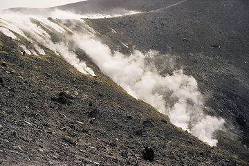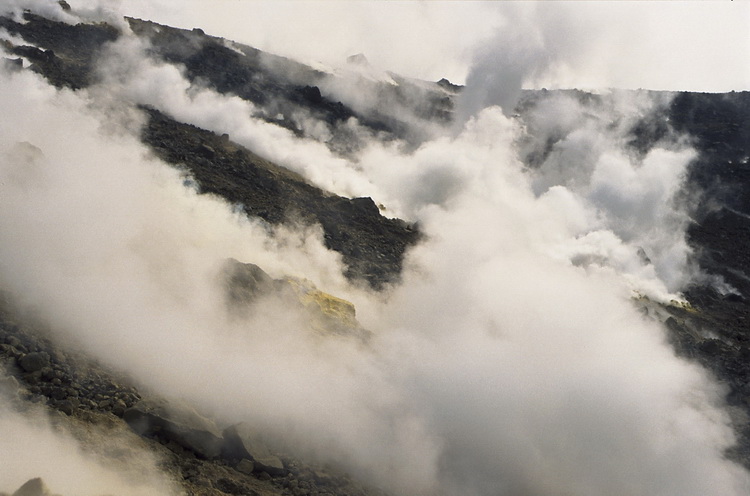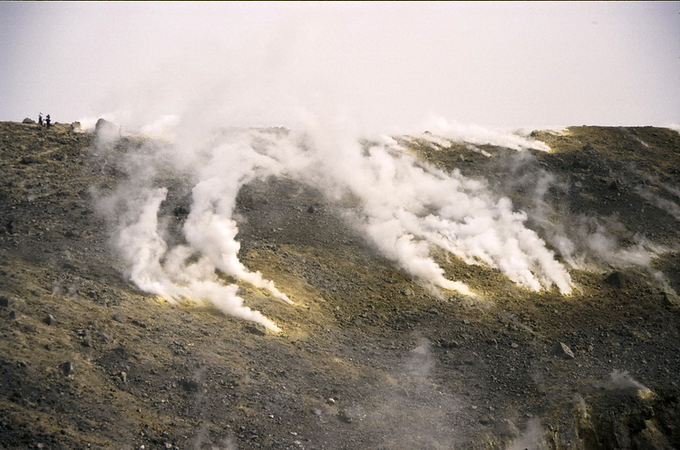 Yellow remainders of sulphur are formed around the fumaroles and provide a strong smell of rotten eggs.