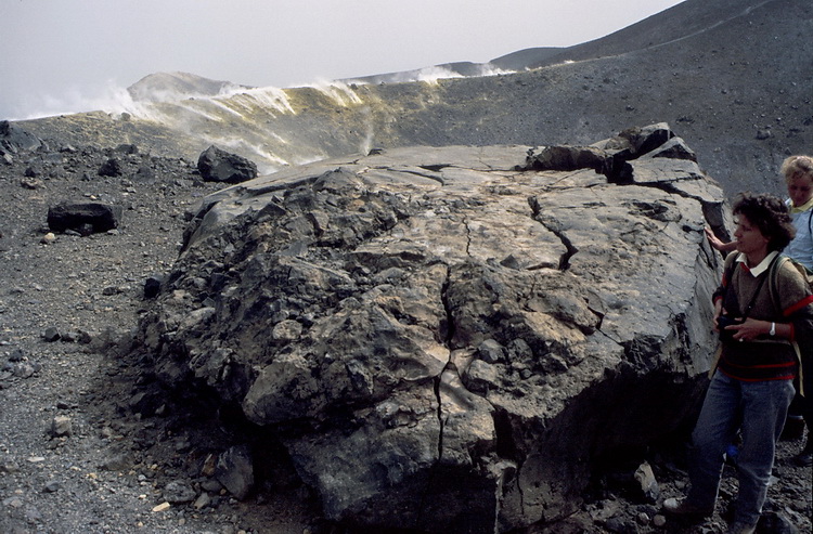 This bomb was thrown out during the last eruption in 1890. One can imagine the force of the explosions which arise if Magma comes into contact with sea-water (phreatomagmatic eruption).