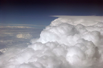 Flight across central Switzerland with Weisshorn and Monte Rosa (left), as well as Matterhorn and Dent d' Herens (right). Thunderstorm clouds at 10.000 m on the flight to Madeira.