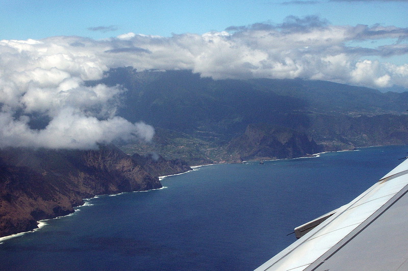 Die Südküste von Madeira ist trockener als der Norden. Das Flugzeug fliegt zunächst parallel zur Küste am Flughafen vorbei, um dann nach einer 180 Grad Kurve auf der Landebahn aufzusetzen, welche zum Teil auf Betonpfeilern ruht. Der Stadtteil Monte, 600 m über der Hauptstadt Funchal gelegen, mit der berühmten Kirche Nossa Senhora do Monte und dem Grab des österreichischen Kaisers Karl I . Während unten in der Stadt die Sonne schien, hingen über El Monte tiefe Passatwolken.