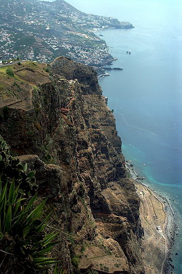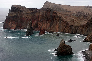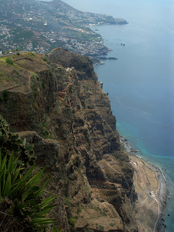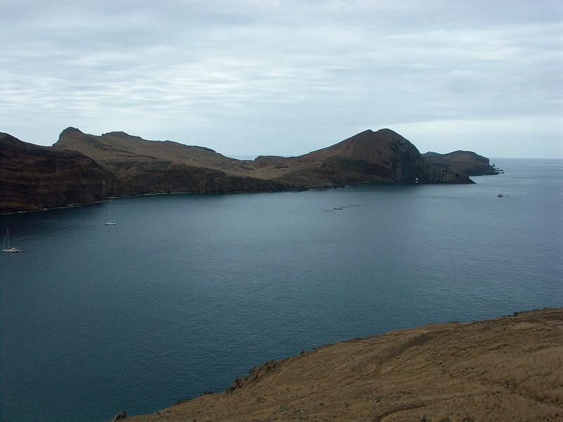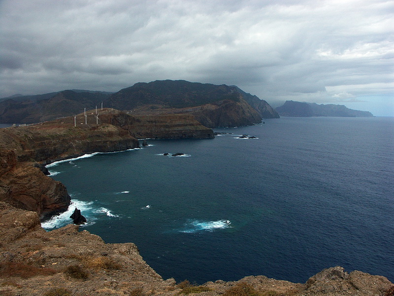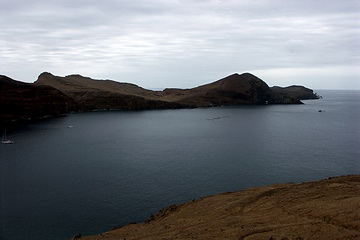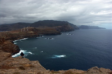 View from the second panorama place at Porto de Sao Lourenco where a several hours' circle hike gives interesting impressions of the eastern part of the peninsula. The climate is kind of desert-like as the mountains are too low to initiate the trade wind clouds. A few kilometers to the west the vegetation starts abruptly. Cabo Girao west of the capital Funchal is easy to reach from the motorway.