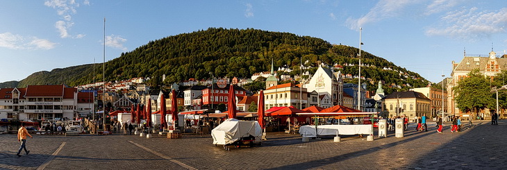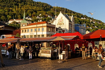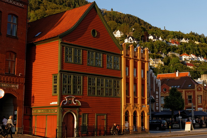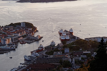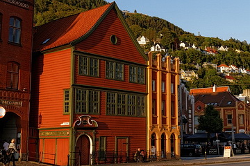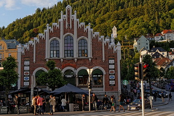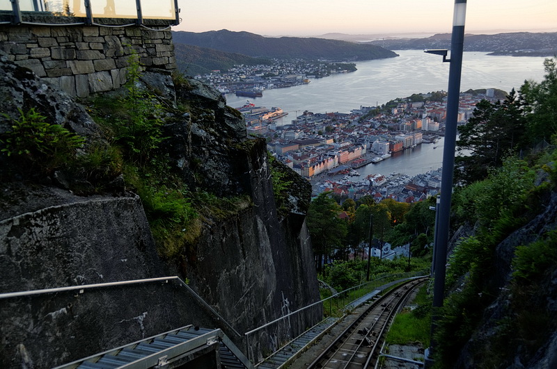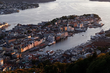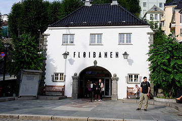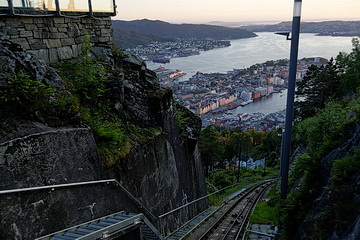 Ebenfalls in Bryggen befindet sich die Talstation der Fløibanen, einer Zahnradbahn auf den 320 m hohen Aussichtspunkt Bergens mit prachtvollem Blick über die Stadt, den man sich auch zur vorgerückten Stunde nicht entgehen lassen sollte.