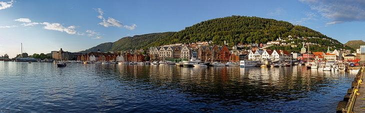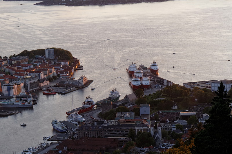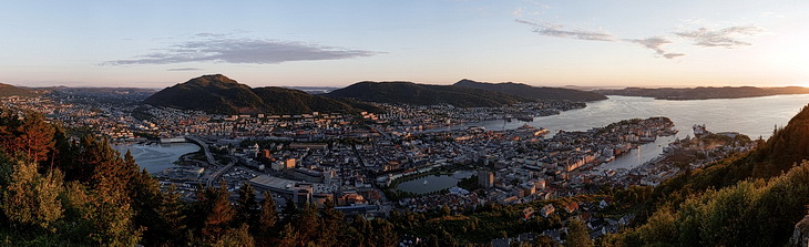 Die Hafenstadt Bergen ist die zweitgrößte Stadt Norwegens und war auch 2014 der Ausgangspunkt für eine abwechslungsreiche Rundreise durch Fjordnorwegen mit spektakulären Eindrücken. Wie schon in den vergangenen Jahren war das Wetter besser als vermutet und von den über 200 Regentagen mit 2.500 mm jährlichem Niederschlag war Ende Juni nichts zu spüren. Trotz der relativ späten Ankunft am Flughafen Flesland hatten wir bis zum Sonnenuntergang um 23:13 noch genügend Zeit, den langen Abend zu geniessen und beispielsweise die letzte Fahrt auf den Fløyen zu nutzen.