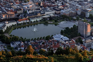Another attraction of Bergen is the Fløibanen funicular, a cable car starting in Bryggen and leading up to Fløyen (320 m) the popular lookout high above the town with a stunning panorama.