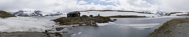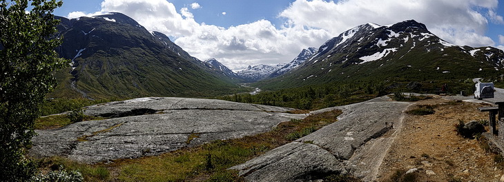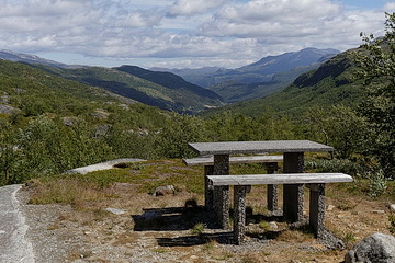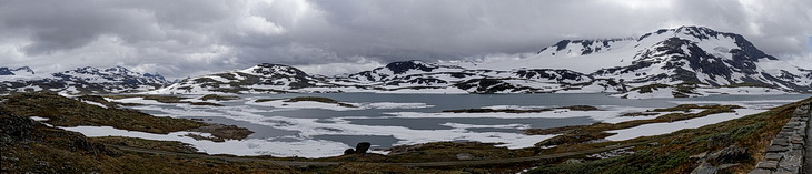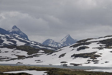 Auf einer Höhe von ungefähr 1400 m wird die Vegetation karger und eine Winterlandschaft erwartet uns. Der Kontrast zwischen den lieblichen Fjordlandschaften mit ihrem gemäßigten Klima und dem arktischen Fjell wird hier besonders deutlich, zumal beide Klimazonen nicht mehr als 25 Straßenkilometer voneinander entfernt sind.