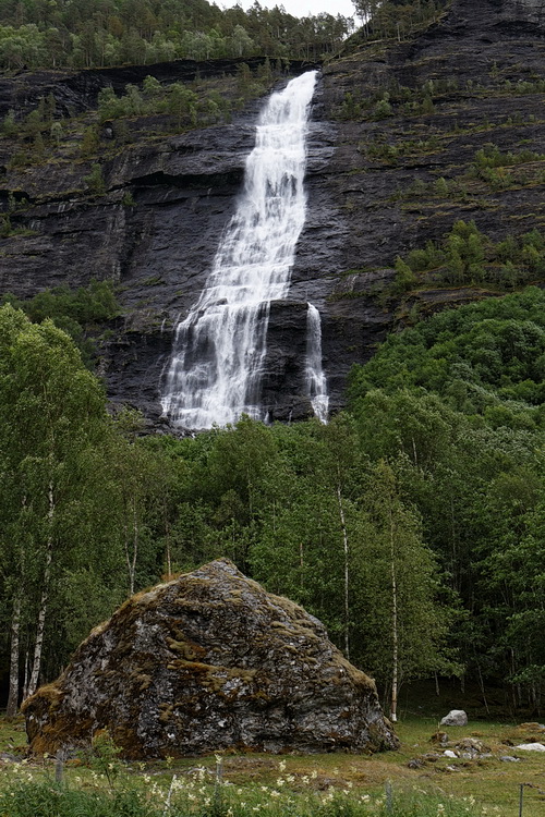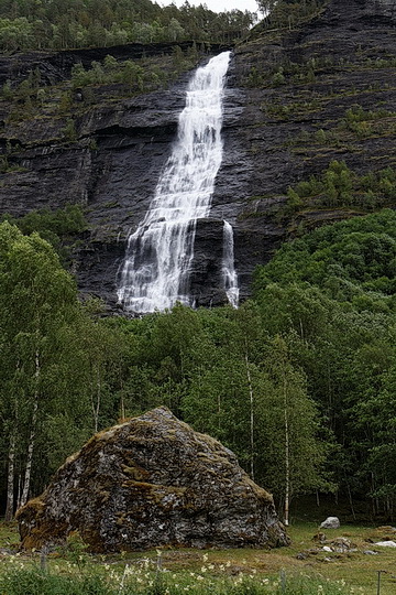 Back down at the fjord the temperatures were quite seasonal again and after less than an hour we had reached our daily destination. Hafslo is a small town on the shore of Hornindalsvatnet embedded in a more gentle scenery compared to Geiranger of the Sunnmøre Alps. Although Hafslo is very popular for having the longest ski-lift in Norway but it is also an ideal starting point for trips and hikes to the ice-falls on the south-eastern side of Jostedalsbreen, which are the topic of the next page.