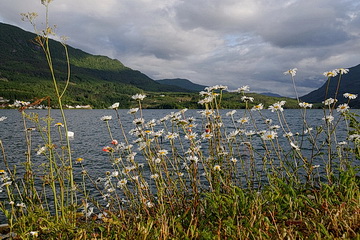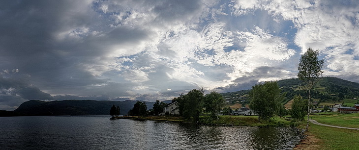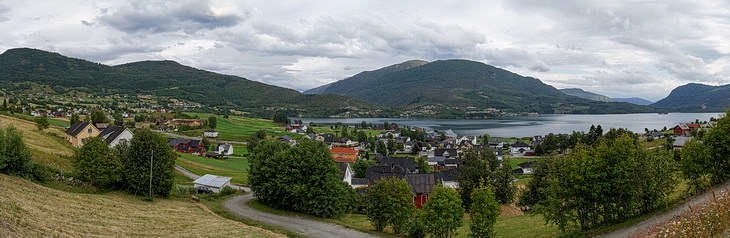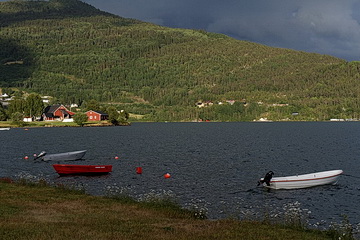 Zurück am Fjord sind auch die Temperaturen wieder der Jahreszeit entsprechend und nach weniger als einer Stunde ist unser heutiges Ziel erreicht. Ähnlich wie Hornindal liegt auch Hafslo an einem See, dem Hafslovatnet, in einer eher lieblichen Landschaft, verglichen mit Geiranger oder den Sunnmøre Alpen. Hier befindet sich nur der längste Skilift in Norwegen, auch im Sommer ist der Ort ein guter Ausgangspunkt für Ausflüge zu den Gletscherabbrüchen auf der Südostseite des Jostedalsbreen, die Thema der nächsten Seite sind.