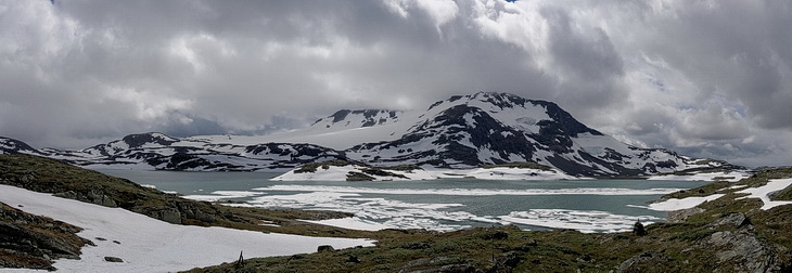 Fjell the Norwegian word for mountain or range describes the high plateaus above the deeply carved fjords, which are sloping down slowly to the Baltic Sea. Completed in 1938 the Sognefjell Road is one of the oldest traffic connections between East- and Western Norway connecting the towns of Gaupne on the Sognefjord and Lom in the Ottadalen valley.