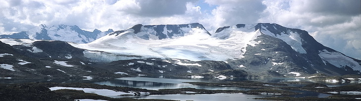 Auf den ersten Blick scheint sich auch das Ausmaß der Vergletscherung gegenüber 2002 (Bild oben) nicht groß verändert zu haben. Links der Leirbreen mit Smørstabbtindan (2222 m), rechts der Smørstabbreen.