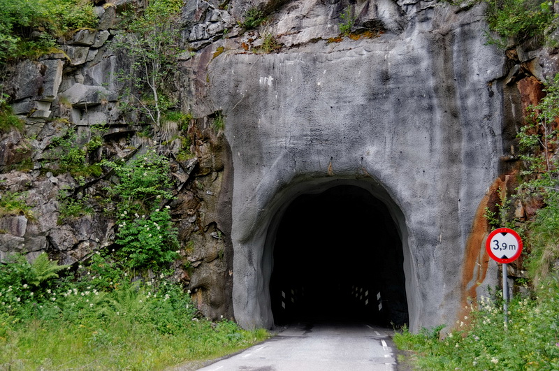 Die 20 km lange Straße am Veitastrondvatnet entlang ist gewöhnungsbedürftig - vor allem die Begegnungen in den zahlreichen Tunneln. Allerdings ist die Verkehrsdichte gering und es gibt genügend Ausweichbuchten.