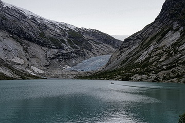 Although Nigardsbreen seems to have lost a considerable amount of ice since 2002, this does not mean that walking on the glacier tongue is safe and easy. A 3 km toll-road leads to a parking lot at the glacier lake where you can either take the boat or use the footpath for the final part to the glacier mouth (including some brooks that have to crossed during the hike).