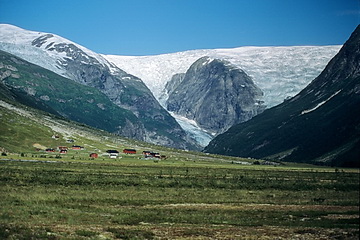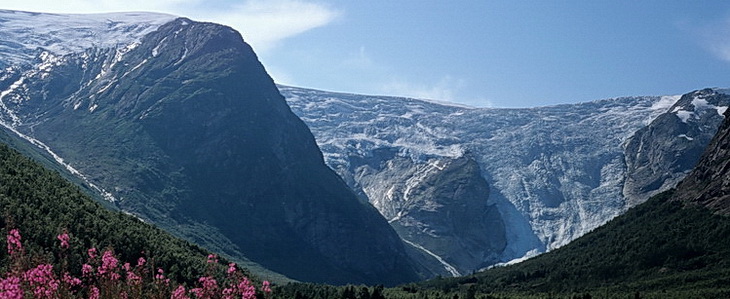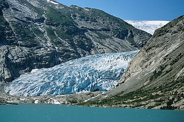 Jostedalsbreen is glaciated plateau with a length of 70 kms covering an area of 480 km² with Lodalskapa (2.083 m) as its highest point. Glaciers like Nigardsbreen, Bergsetbreen, Austerdalsbreen, Langedalsbreen, as well as Flatbreen and Boyabreen are flowing down into the valleys. Other notable glaciers in Norway are Svartisen, Folgefonna (südlich des Hardangerfjords), Blåbreen und Hardangerjøkulen (östlich des Hardangerfjords). The Glacier Museum in Fjærland and the Breheimen Center in the Jostedalen valley are also worth to be visited.