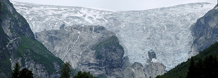 Der Jostedalsbreen ist eine 70 km lange, vergletscherte Hochfläche mit einer Ausdehnung von 480 km² und der Lodalskapa (2083 m) als höchstem Punkt. Zahlreiche Gletscherzungen und Eisabbrüche fließen die Täler hinab wie beispielsweise der Nigardsbreen, Bergsetbreen, Austerdalsbreen, Langedalsbreen, sowie den Flatbreen und den Boyabreen. Die weiteren grossen Gletscher Norwegens sind: Svartisen, Folgefonna (südlich des Hardangerfjords), Blåbreen und Hardangerjøkulen (östlich des Hardangerfjords). In Fjærland gibt es ein Gletschermuseum und im Jostedalen das Breheimen Center.