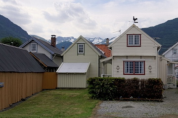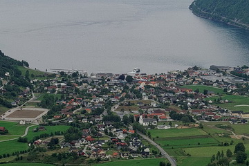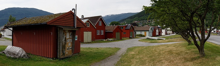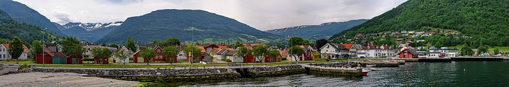 Knapp 15 Minuten dauert die Fahrt über den Sognefjord und an dessen Ufer entlang bis nach Vikøyri, wo es neben der bekannten Stabkirche noch eine Kulturløype (Kulturwanderung) durch den historischen Teil des Dorfes gibt.