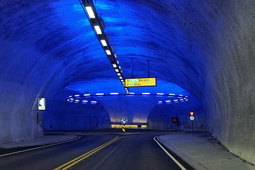 A spectacular driveway in the tunnel leading to the new Hardanger bridge is reducing the travel time to our next stop: the Ullensvang Hotel in Lofthus.