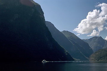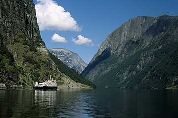 The other alternative for this trip starts at Kaupanger with a 4 hours' passage to Gudvangen through the beautiful scenery of Sogne-, Auerlands- and Nærøyfjord.