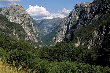 The ferry from Kaupanger to Gudvangen at the end of Nærøyfjord takes about 4 hours. Nærøyfjord, named after Njord, the God of seamen is 17 km long, 500 m deep and only 250 m wide at its narrowest part. Following the Nærøydalen valley we reached the Stalheim Pass (350 m) where the historic Stalheims Hotel was built in 1885. The first postal connection from Oslo to Bergen passing Stalheimskleiva is dated back already to 1647.