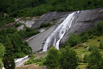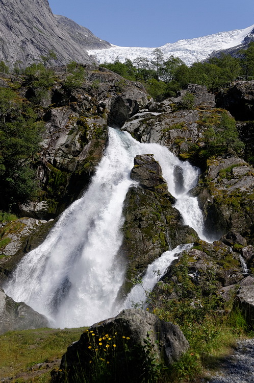 Kleivavegen was already built in 1927 and is used by hikers and cars at the same time up to Kleivafossen where both paths divide giving the hikers a time to breathe. Up to 10.000 liters per second of glacial water are running down this impressive waterfall.