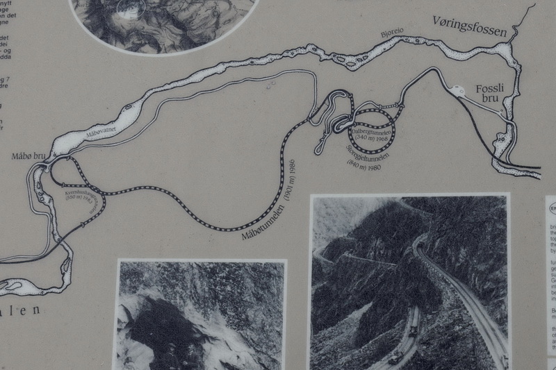 The new roadway built and in 1986 is described in detail at the little resting place near the Mabø bridge on the way back from Vøringsfossen. Today the old road is used as cycle- and footpath.
