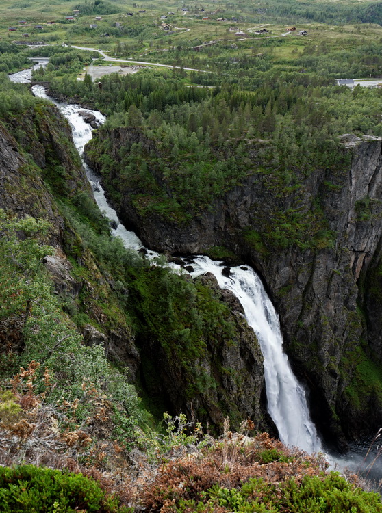 Den 182 m hohen Vøringsfossen sieht man am besten von der Aussichtskanzel beim Hotel Fossli. Da das Wasser des Bjoreio Flusses zur Energiegewinnung verwendet wird, ist die Wassermenge von 12 m³ pro Sekunde nur in den Sommermonaten garantiert.