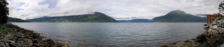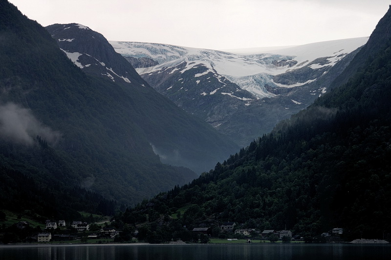 Wieder zurück in Ullensvang war die Wetterlage noch unverändert und eine düstere Stimmung lag über dem Fjord.
