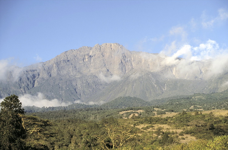 Mount Meru is the second highest mountain of Tanzania and Africas number four after Kilimanjaro (5.895 m), Mount Kenya (5.199 m) and Ruwenzori (5.109 m) as the altitude of Ras Dashan in Ethiopia differs between 4.620 m and 4.533 m. Just like Kilimanjaro Mount Meru had been formed by volcanic activities along the 6.000 km East-African Fault which extends from the Jordan Valley through the Red Sea and East Africa up to Mozambique. The most recent eruption of Meru was in 1910 and a few years earlier, in 1880, the small Ashcone (3667 m) arose. A violent detonation about 8.000 years ago blew up the summit of a much higher mountain and formed the caldera similar to the explosion of Mount St. Helens. Today only the western rim of the crater is still existing with Socialist Peak as its highest point. The summit of Mount Meru lies just below the tropical snow level and therefore no glaciation was possible although the summit is sometimes covered with snow.