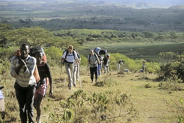 We finally reached the summit around midday, together with the first clouds and so the sight was restricted to some impressive views down to the crater of the Ash Cone and the rainforest. Back at the Saddle Hut we preferred to spend a quiet night in our tents before we went back down to the gate and further to Arusha.