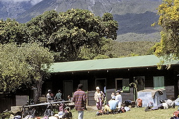 Gradually the path became steeper and through dense rainforest we climbed on to the Saddle Hut (3.500 m) where we spent an uneasy night.
