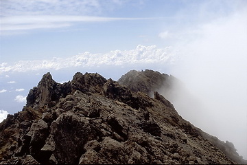 In perfect weather conditions we finally tackled the summit of Meru still 1.000 m above us. In a large curve we followed the rim of the crater, the uncomfortable debris of lava in combination with the thin air made this tour a quite strenuous undertaking.