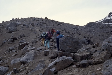 After a long rest on the summit we started descending down to the Austrian Hut and via Mackinders Camp to the meteorological station where we stayed for the night.