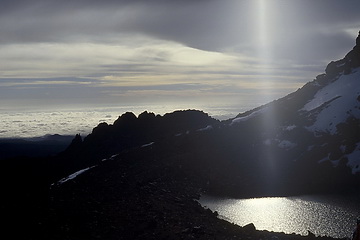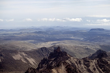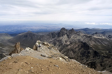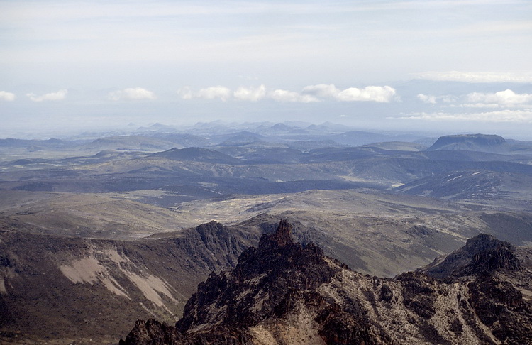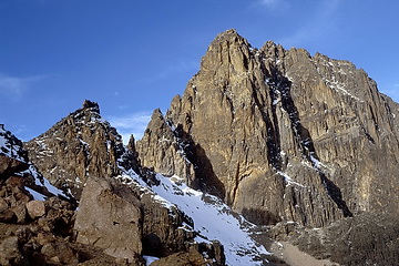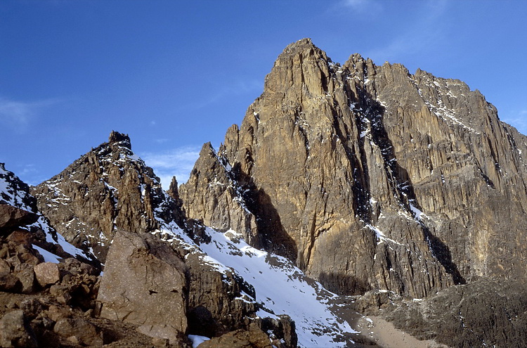 View back to Batian, Nelion nd the Needle of Pt John, in the background Point Lenana.