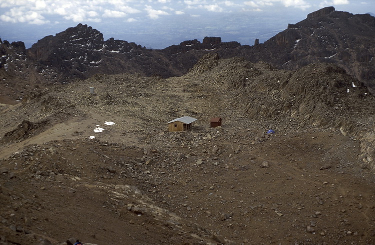 Nach einer ausgiebigen Gipfelrast stiegen wir ab zur Austrian Hut und weiter über Mackinders Camp zur Meteorologischen Station, wo wir übernachteten.